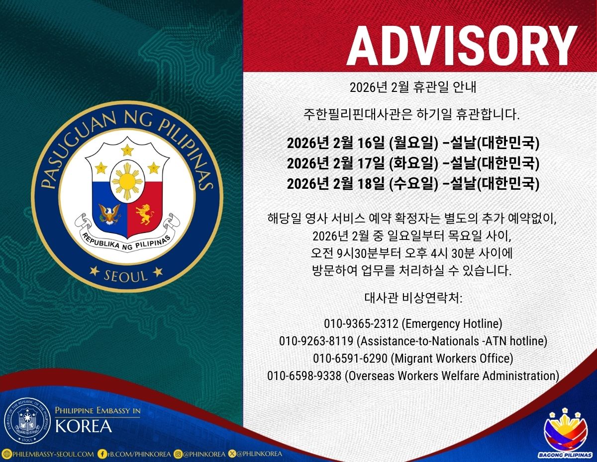 16 February 2026 (Monday) – Seollal (ROK)