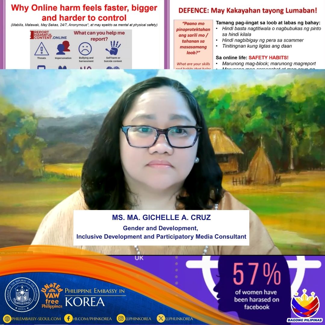 23 November 2025, Seoul - The Philippine Embassy in Seoul, through its Gender and Development (GAD) Unit, successfully conducted a Digital Safety and Awareness Forum aimed at equipping the Filipino community in the Republic of Korea with the knowledge and tools to prevent and respond to Technology-Facilitated Gender-Based Violence (TFGBV). Held on 23 November 2025, the event addressed a broad spectrum of digital risks, while promoting responsible digital citizenship and awareness of online rights. The forum forms part of the global observance of the 18-Day Campaign to End Violence Against Women (25 November–12 December), highlighting digital safety as an essential pillar of anti-VAWC initiatives.