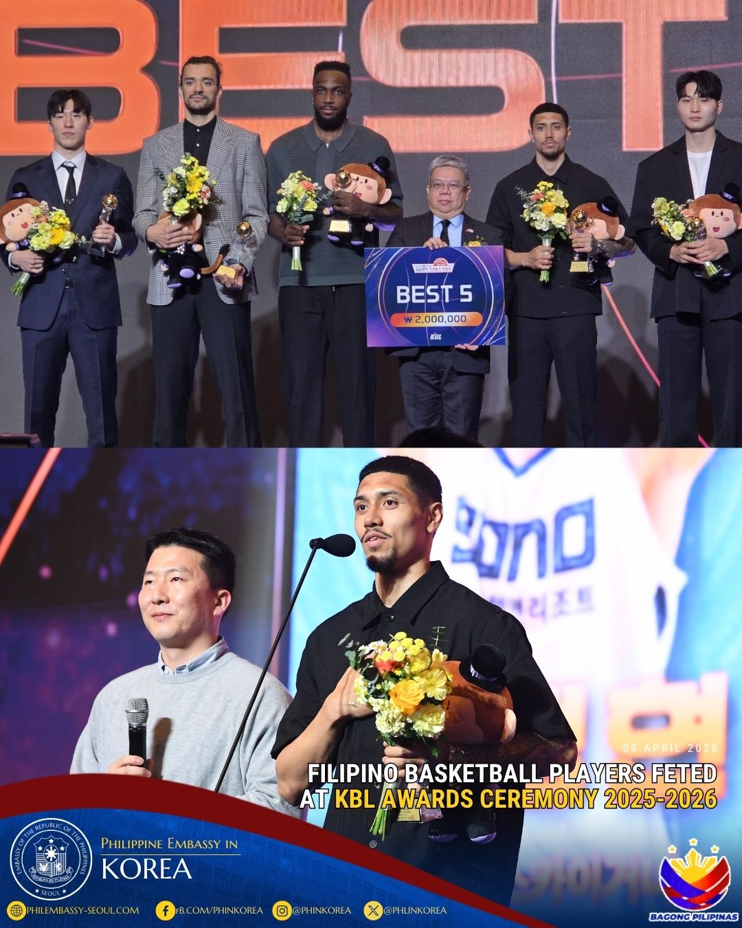 09 April 2026, Seoul - During the 2025-2026 Korean Basketball League (KBL) Awards Ceremony at the Grand Intercontinental Seoul Parnas Hotel in Samseong-dong, Seoul, two Filipino players were given awards for their outstanding performances during the 2025-2026 KBL season. Kevin Quiambao of Goyang Sono Skygunners won the Rookie of the Year Award, becoming the third Filipino player to win such a feat.