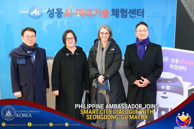 Seoul, 14 January 2026 — The Philippine Ambassador to the Republic of Korea H.E. Bernadette Therese C. Fernandez joined members of the diplomatic community in a Tea Roundtable and Smart City Site Visit hosted by Seongdong-gu Mayor Jung Won-oh and Dr. Min Byoungchul of the Sunfull Foundation, highlighting Seongdong-gu’s innovative and human-centered approach to smart city development.