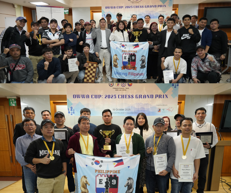 19 October 2025. Seoul, Republic of Korea - The Philippine Embassy in Seoul, through the Migrant Workers Office (MWO) and the Overseas Workers Welfare Administration (OWWA), successfully hosted the First OWWA Cup: 2025 Chess Grand Prix at the Hana Bank Head Office, in partnership with the Philippine E9 Chess Club and KEB Hana Bank.