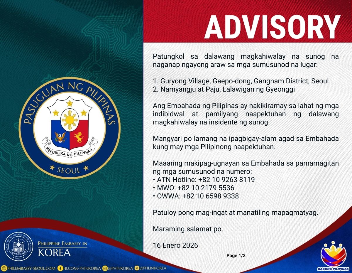 Please be informed that upon recommendation of the Bids and Awards Committee (BAC) of the Philippine Embassy, Seoul, as contained in its Resolution No. 79-2024 dated 02 October 2024, the Embassy is awarding the contract for performance during the 19th Migrants' Arirang Multicultural Festival 2024 to KDR MUSIC HOUSE.