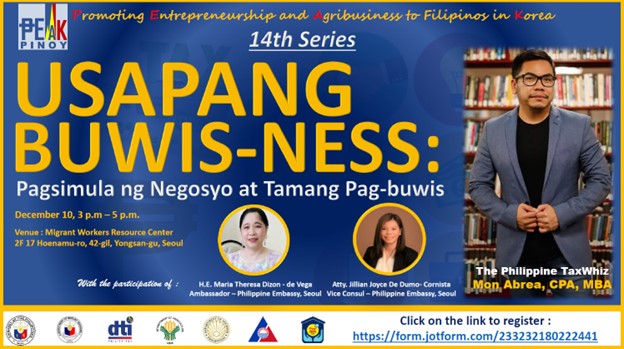 Malugod na inaanyayahan ng Embahada ng Pilipinas sa Korea at ng Migrant Workers Office (MWO) - Overseas Workers Welfare Administration (OWWA) ang mga bagong dating na Filipino EPS workers na makilahok sa Online Post Arrival Orientation Seminar sa darating na March 3, 2024, 5PM to 7PM via Zoom. Maari pong sumali ang mga may entry date nuong 2023 at ngayong 2024. Magparehistro sa pamamagitan ng QR code sa poster o sa link https://forms.gle/SBy8eyhLWV4yShbYA. Magkita-kita po tayo!