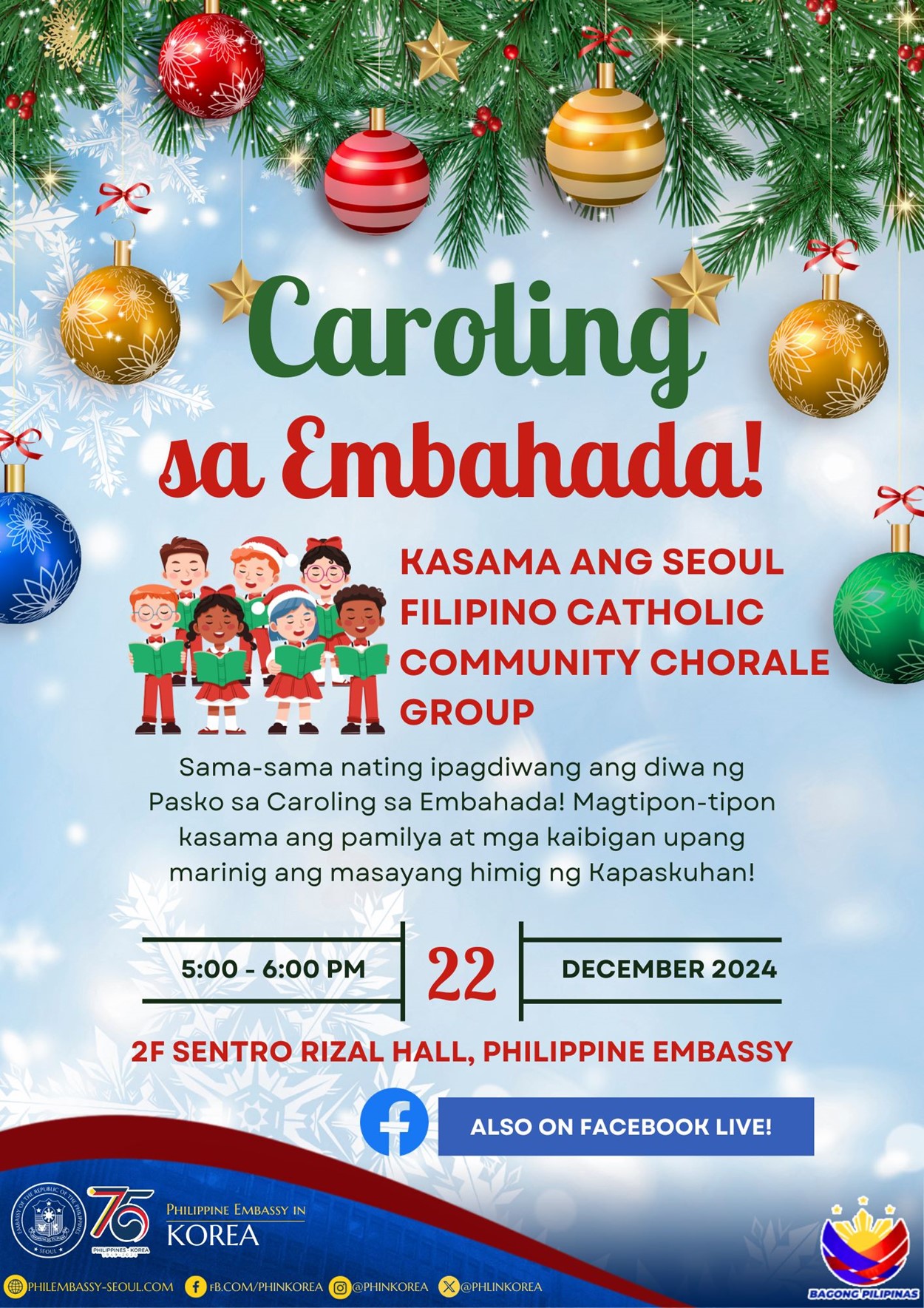 ANNOUNCEMENT: Everyone is invited to the Seoul Friendship Festival 2025 at Dongdaemun Design Plaza this 24 to 25 May 2025. Visit the Philippine booths at the World Embassy Zone and World Food Zone to experience Philippine culture, food, fun games and prizes.