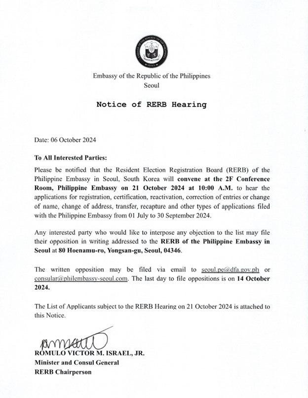 Please be notified that the Philippine Embassy in Seoul, South Korea will conduct the Final Lockdown and Sealing of Online Voting and Counting System to be used for overseas voting on: