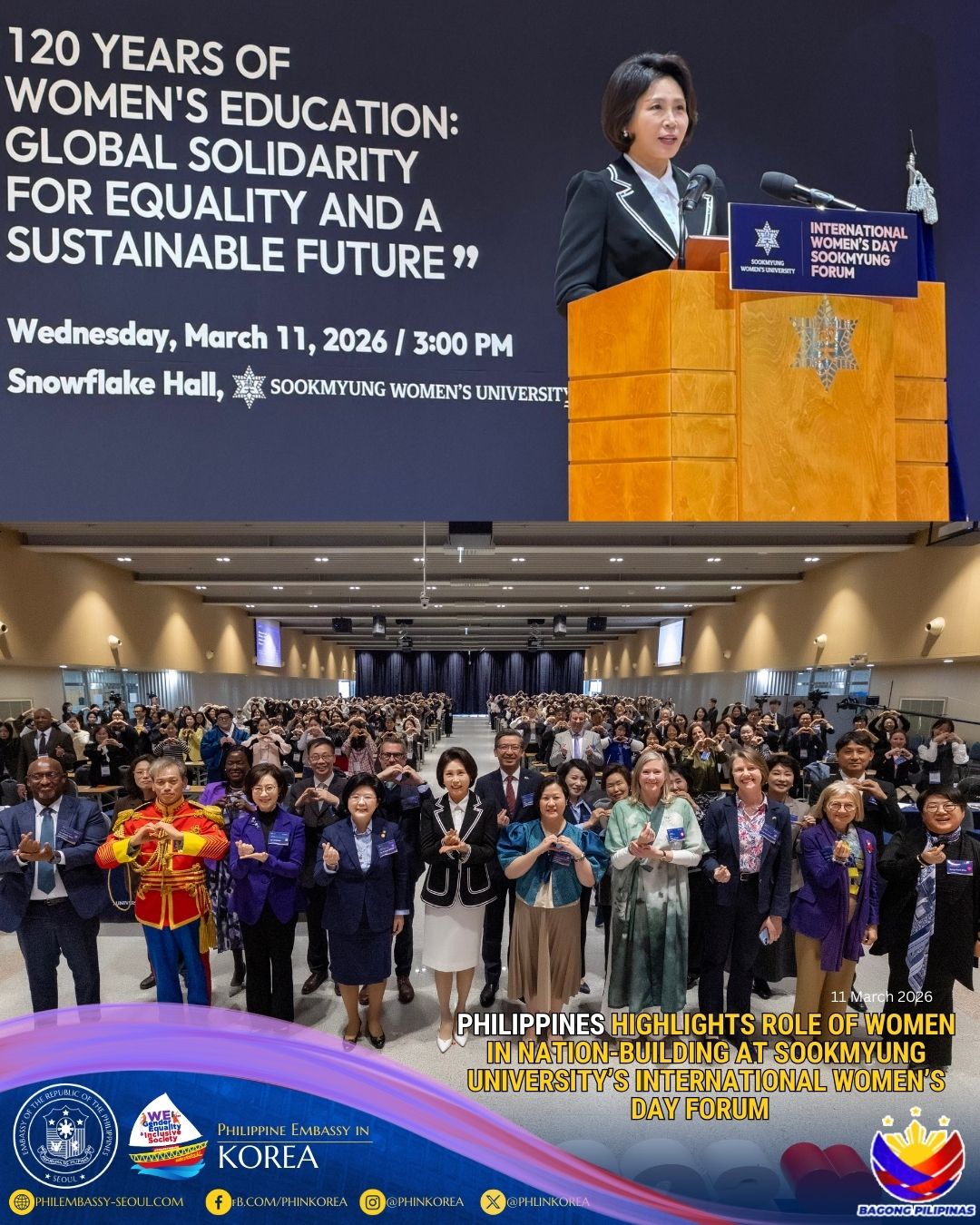 PHILIPPINES HIGHLIGHTS ROLE OF WOMEN IN NATION-BUILDING AT SOOKMYUNG UNIVERSITY’S INTERNATIONAL WOMEN’S DAY FORUM