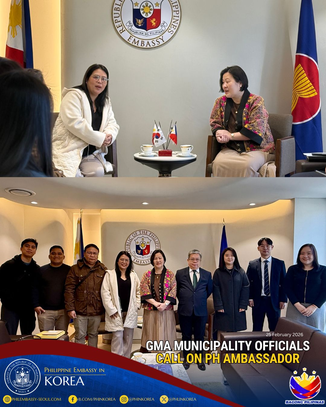 Ambassador Dizon-de Vega conveyed the appreciation of the Philippine Government to Speaker Woo and the National Assembly for the swift ratification of the Philippines-Korea Free Trade Agreement in 2024 as well as their support for the Philippines-Korea Strategic Partnership, two major achievements during the commemorative year marking 75 years of diplomatic relations between our two countries.