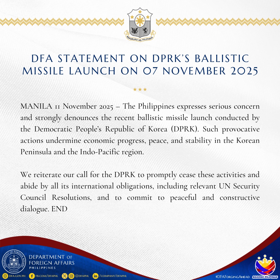 MANILA 11 September 2025 — The Department of Foreign Affairs takes note of the posting on Facebook by the President of South Korea on a project proposal submitted to South Korea for funding.